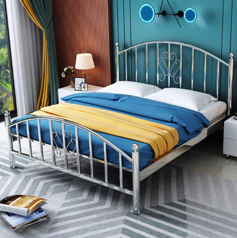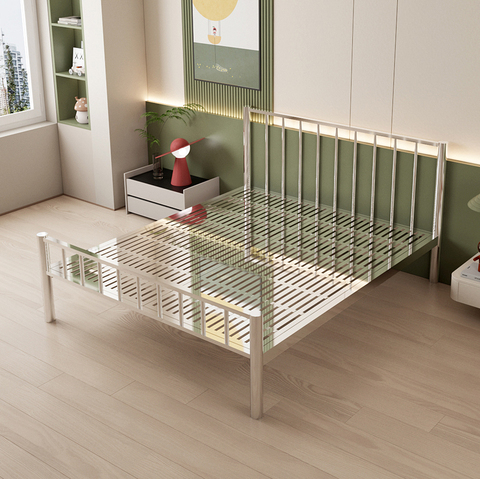 Modern basit 304 paslanmaz çelik yatak odası tek, çift kişilik yatak daire kalın Metal yatak çerçeveleri
