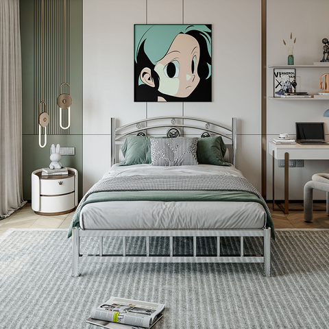 Modern basit tek daire yatak İskandinav tarzı Metal paslanmaz çelik yatak genç yatak odası mobilyası