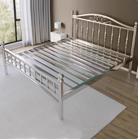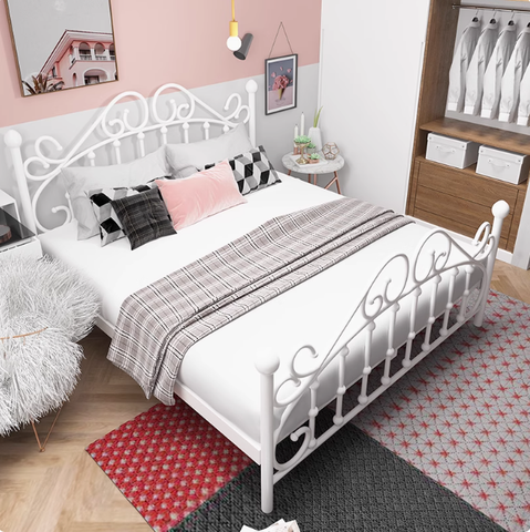 Modern ev yatak odası mobilyası kraliçe kral demir Platform yatağı beyaz çelik Metal çift karyola iskeleti